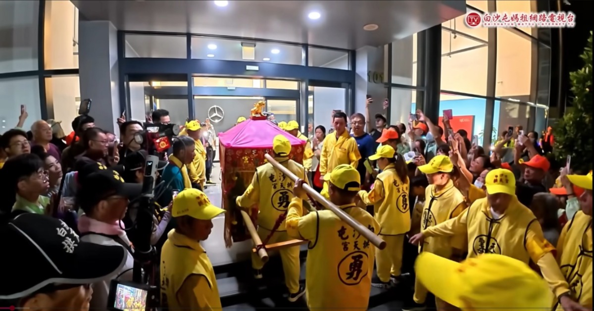 白沙屯媽祖14日晚間進駕中華賓士員林展示中心。(圖/ 白沙屯媽祖網路電視台)